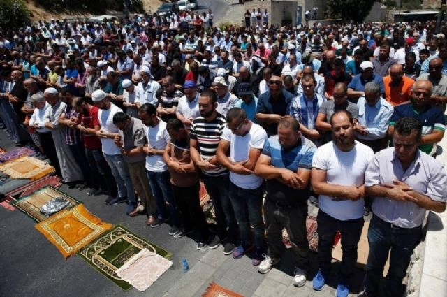 İsrail hükümetinin Mescid-i Aksa'da cuma namazı kılınmasını yasaklamasına tepki göstererek camiye girmek isteyen Filistinliler polis tarafından darp edildi. İsrail güvenlik güçleri, Mescid-i Aksa'nın Bab El Amud bölgesinde ambulans personeline ve basın mensuplarına saldırdı. İsrail polisi Mescid-i Aksa'da görevli din adamlarını gözaltına alarak polis merkezlerine götürdü. FİLİSTİNLİLER CUMA NAMAZINI SOKAKLARDA KILDIBinlerce Kudüslü Müslüman, Mescid-i Aksaya alınmamaları üzerine Kudüs'ün Selahaddin Çaddesinde cuma namazı kıldı. Filistin Hükumeti, Mescid-i Aksa Camiinin ibadete kapatılması ve bölgenin güvenlik alanı ilan edilerek müslümanların girmesinin engellenmesini kınayan bir açıklama yaptı.Mescid-i Aksa'da İsrail'in Kudüs'ü işgal tarihi olan 1967'den beri ilk defa cuma namazı kılınmadı.İsrail hükümeti, bu sabah Kudüs'de çıkan çatışmada iki İsrail polisinin yaralanması ve üç Filistinlinin Mescid-i Aksa'da vurulması üzerine bugün Mescid-i Aksa'yı cuma namazına kapatma kararı aldı. Yaralanan İsrail güvenlik güçlerinden iki polisin daha sonra hayatını kaybettiği bildirildi. (Muhammed Rabah / İHA)
