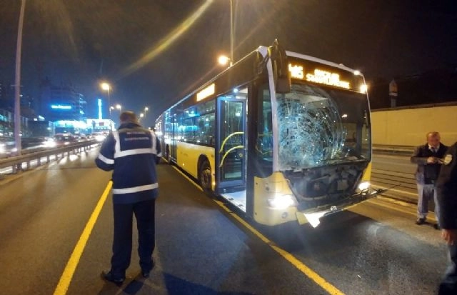 Merter'de bariyerleri aşarak metrobüse kaçak binmeye çalışan gence metrobüs çarptı.