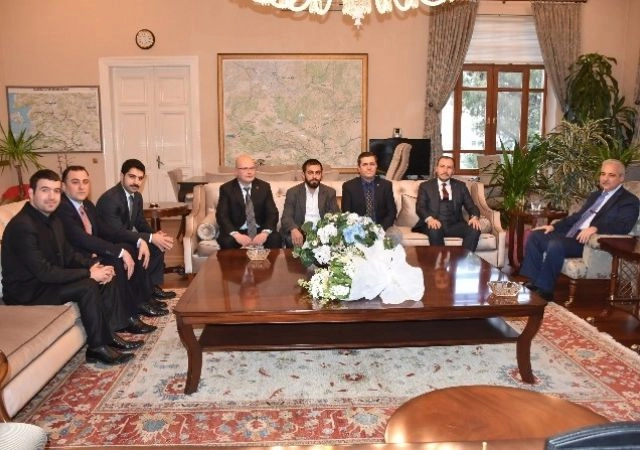 Manisa Yunusemre MHP İlçe Başkanı Buğra Çelikkanat ve yönetim kurulu üyeleri Manisa Valisi Mustafa Hakan Güvençer'e nezaket ziyaretinde bulundu.