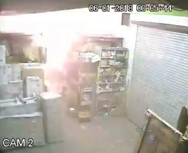 Samsun'da mobilya deposundaki yangının güvenlik kamera kayıtları ortaya çıktı.