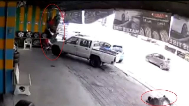 Tayland'da aşırı süratli bir motosiklet, kontrolden çıkıp havalandı ve bir lastikçiye uçtu.Feci kazada sürücü ağır şekilde yaralandı. Yaralının yardımına çevredekiler koştu. Şahıs, olay yerine çağrılan ambulansla hastaneye kaldırıldı.