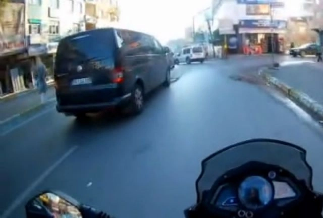 İstanbul Ümraniye'de bir motosiklet, sinyal vermeden dönüş yapan minibüse çarptı. O anlar kask kamerasına yansıdı. Olay, geçtiğimiz gün sabah saat 09.00 civarında Ümraniye'de meydana geldi. Edinilen bilgilere göre, trafikte seyir halinde olan bir minibüs sinyal vermeden aniden sağa dönüş yaptı. O esnada arkasında seyir halinde bulunan motosiklet sürücüsü de aniden yavaşlayamadı ve minibüse çarptı. Çarpmanın etkisiyle yere düşen motosiklet kullanıcısının yardımına minibüs sürücüsü ve çevredeki vatandaşlar koştu. Hafif yaralanan motosiklet sürücüsüne yardıma gelen minibüs şoförü, "Kusura bakma" diyerek özür diledi.Yaşan kaza anı saniye saniye kask kamerasına yansıdı. Görüntülerde, trafikte seyreden bir minibüsün sinyal vermeden aniden döndüğü ve motosiklet sürücünün minibüse çarptığı görülüyor. Daha sonra yere düşen motosiklet sürücüsünün yardımına minibüs şoförü ve çevredeki vatandaşların geliyor. Motosiklet sürücüsü çevredekilerin yardımıyla kaldırarak kenara çekiliyor.(İAH)