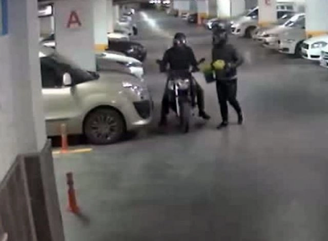 İstanbul Beylikdüzü'nde lüks siteye ellerinde saksılarla gelen motorlu hırsızlar, 50 bin lira değerindeki motosikleti çaldı. Çaldıkları motosikletin yerine yanlarında getirdikleri 2 saksıyı koyan hırsızlar, güvenlik kameralarına yakalandı.
