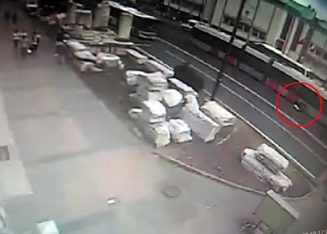 İstanbul'da Kabataş-Bağcılar tramvay hattına giren bir motosiklet sürücüsü iki tramvayın arasında kalarak ölümden döndü. O anlar güvenlik kameralarına tarafından kaydedildi.
