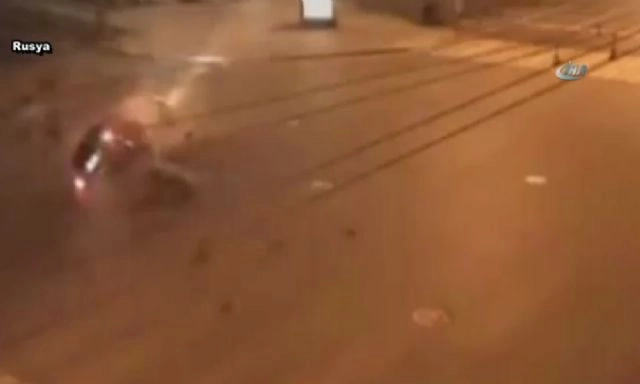 Rusya'da aşırı hız yapan motosikletli ile otomobil kafa kafaya çarpıştı. Çarpışmanın şiddetiyle motosikletli metrelerce havaya uçup yere çakıldı. Otomobil ise ters döndü. Korkunç kazada her iki sürücünün de hayatını kaybettiği öğrenildi.