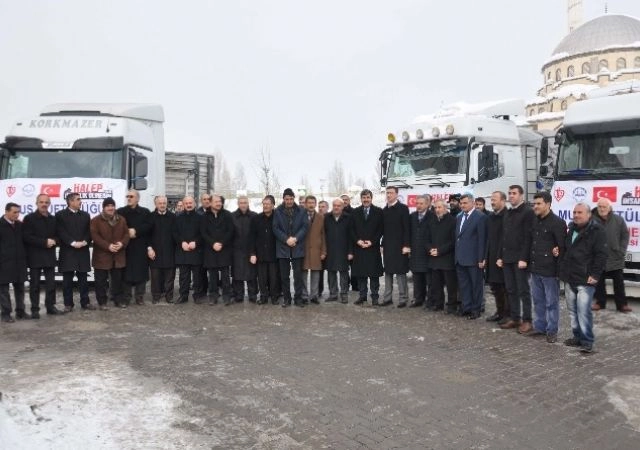 Muş Valiliği ve İl Müftülüğü iç savaşın devam ettiği Halep'e 4 TIR çeşitli gıda ve giyim malzemesi gönderildi.