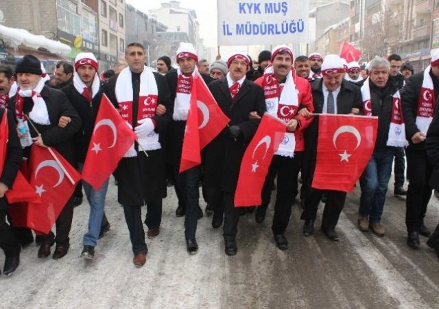 Muş'ta binlerce kişi Sarıkamış şehitleri için düzenlenen etkinlik kapsamında yürüyüş yaparak dualar etti.