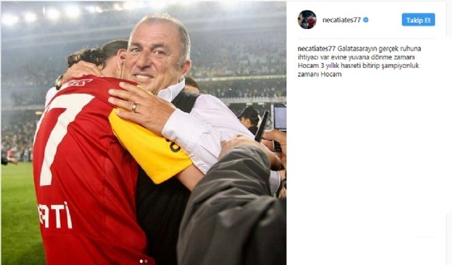 Galatasaray'ın eski futbolcularından Necati Ateş, Teknik Direktör Fatih Terim ile çekilmiş bir fotoğrafını paylaştı ve kendisine sarı-kırmızılı takımın başına geçmesi çağrısında bulundu. Galatasaray'ın eski golcülerinden Necati Ateş, Igor Tudor'un görevine son verildiği yönündeki haberlerin ardından Fatih Terim ile birlikte bir fotoğraf paylaşarak tecrübeli teknik adama çağrıda bulundu. Necati Ateş, fotoğrafla birlikte, "Galatasaray'ın gerçek ruhuna ihtiyacı var. Evine, yuvana dönme zamanı Hocam. 3 yıllık hasreti bitirip şampiyonluk zamanı Hocam" ifadelerini paylaştı.Ateş'in bu paylaşımı sarı-kırmızılı taraftarlardan büyük beğeni topladı.