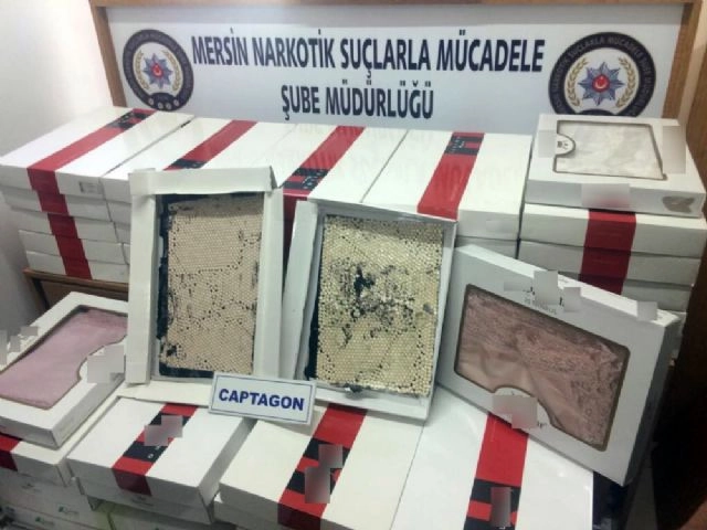 Mersin'de bir kargo şirketine düzenlenen operasyonda, Suudi Arabistan'a gönderilmek üzere hazırlanmış nevresim kutularının içerisinde 99 bin tablet captagon uyuşturucu hap ele geçirildi.