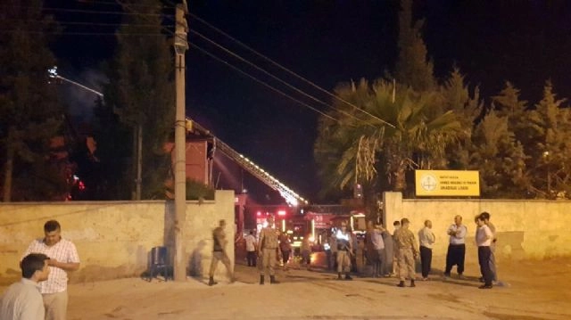 Hatay'ın Hassa ilçesinde bir okulun bahçesinde düğün yapıldığı sırada havai fişek gösterisi yapıldığı sırada, havai fişeklerin okulun çatısına düşmesi sonucu, okulun çatısı yandı.
