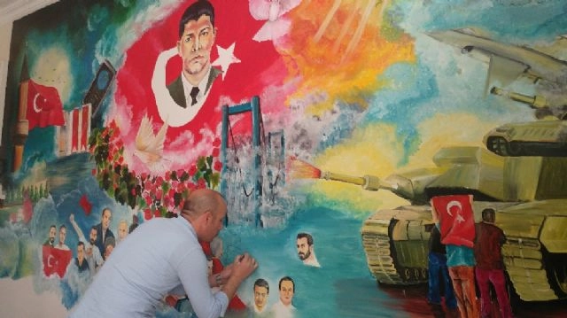 Tokat'ın Reşadiye ilçesinde resim öğretmeni Metin Kaş, 15 Temmuz'daki darbe girişiminde şehit düşen Astsubay Ömer Halisdemir'in portesini okul duvarına resmetti.