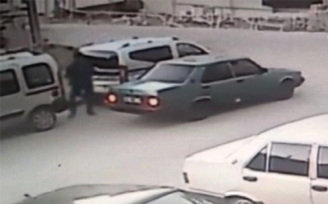 Ankara'da gündüz vakti park halindeki araçtan malzeme çalan hırsızlar, güvenlik kamerasına yakalandı. Ankara'da gündüz vakti park halindeki araçtan malzeme çalan hırsızların rahatlığı görenlere "pes" dedirtti. Araçlarıyla boş bir sokağa giren şahıslar, önce etrafı kolaçan etti, ardından da park halindeki hafif ticari aracın arka camını kırarak içerideki malzemeleri birer birer çalıp geldikleri araca yükledi. Hırsızlık anı yoldaki güvenlik kamerasınca saniye saniye kaydedilirken, hırsızın rahatlığı ise görenleri hayrete düşürdü.(Caner Ünver/İHA)