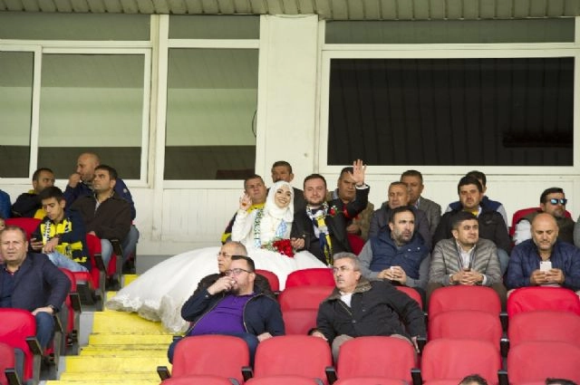 Ankaragücü taraftarı Ali Bölük, bu akşam yapılacak düğünleri öncesi gelinle birlikte tribünden Ankaragücü-Boluspor maçını izledi.Ankara'nın Kızılcahamam ilçesinde ikamet eden Ali ve İrem Bölük çifti, birkaç gün önce evlenmek için Kızılcahamam Belediyesi Evlendirme Dairesi'ne başvurmuş, nikah masasına gelinlik ve damatlık yerine Ankaragücü formasıyla oturmuştu. Fanatik Ankaragücü taraftarı olan Ali Bölük, akşam yapılacak düğün öncesi eşi ile birlikte Ankaragücü-Boluspor maçını tribünde izlemek için maçın oynandığı Ankara 19 Mayıs Stadyumu'na geldi. Gelinlik ve damatlıklarıyla tribünde maç izleyen çift, Ankaragücü'nün 2-0'lık galibiyetinin mutluluğuyla stattan ayrıldı.Ankaragücü'ne sevdasının büyük olduğunu ifade eden Ali Bölük, "Ankaragücü formasıyla nikah masasına oturmak hayalimdi, bu şekilde bu stada gelmek de hayalimdi. Araba arkası yazımızda 'Bir gülüşü var sanırsın Ankaragücü sahaya çıkıyor' yazıyor. Hayallerimi gerçekleştiriyorum. İnşallah bugünde maçı alacağız. Düğünümüz akşam saat 19.00'da Kızılcahamam'da" diye konuştu.İrem Bölük ise "Artık ben de Ankaragücü taraftarıyım" dedi.