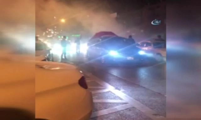 İstanbul Ümraniye'de asker eğlencesi sırasında yolu keserek havaya ateş açan magandalar, vatandaşların canını hiçe saydı. Bu anlar cep telefonu kamerasıyla görüntülendi.
