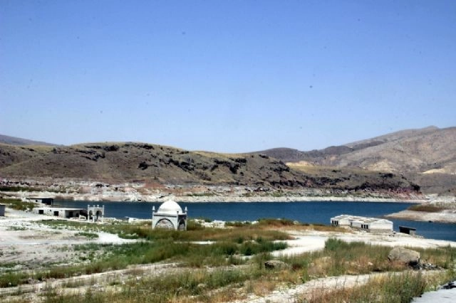 Kayseri Yamula Barajı'nın sularının çekilmesiyle, baraj altında kalan Kuşçu Köyü tekrar gün yüzüne çıktı.