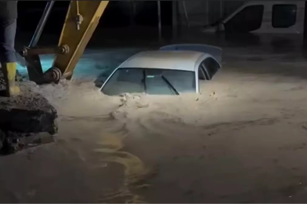Taşkın nedeniyle oluşan selde bazı araçlar akıntıya kapıldı, bazıları ise sular altında kaldı.