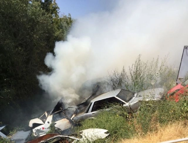 Elazığ'da otların yanmasıyla başlayan yangın, yedi emin otoparkına sıçradı. Yangında 4 araç zarar gördü.
