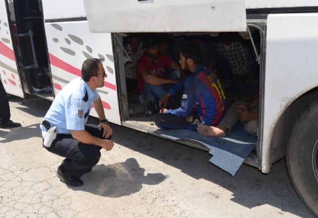 Çorum'un Sungurlu ilçesinde bir yolcu otobüsünde 20'si bagaj bölümüne saklanmış 119 kaçak göçmen yakalandı. Edinilen bilgilere göre, Sungurlu ilçesinde polis ekipleri şüphe üzerine Erzincan'dan Ankara'ya gittiği öğrenilen Mustafa Y. yönetimindeki 59 UR 095 plakalı yolcu otobüsünü durdurdu. Polis ekiplerinin otobüste yaptığı aramada Türkiye'ye yasa dışı yollardan girdiği tespit edilen Irak, Türkmenistan, Suriye, Afganistan, Somali ve Pakistan uyruklu olduğu öğrenilen 102'si erkek, 9'u kadın, 8'i çocuk 119 göçmen yakalandı.BAGAJDAN BİLE GÖÇMEN ÇIKTISungurlu Emniyet Müdürlüğü ekiplerinin kontrol noktasında durdurdukları ve trafikten men edildiği öğrenilen otobüsün her tarafından kaçak göçmen çıktı. Bazı kaçak göçmenlerin otobüs içerisinde üst üste, bazılarının ise otobüs şoförlerinin dinlenmek amacıyla kullandığı bölümde yolculuk yaptığı öğrenildi. Polis ekiplerinin yaptığı detaylı aramada otobüsün bagaj kısmından da 20 göçmen çıktı.Bazı kaçak göçmenler, Türkiye'ye yaklaşık iki ay önce farklı tarihlerde yasa dışı yollardan giriş yaptıklarını söyledi. Göçmenler, Erzincan'dan Ankara'ya çalışmak için gittiklerini ifade etti.Polis ekipleri tarafından kimlik kontrolleri yapılan göçmenlerin Göç İdaresi İl Müdürlüğü'ne teslim edilmek üzere Çorum'a gönderildiği öğrenildi.(Serkan Şansever/İHA)