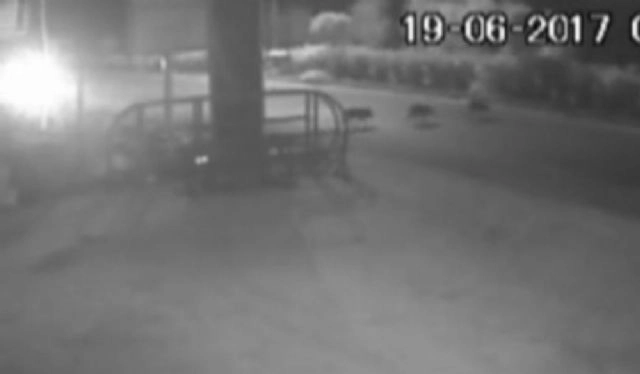 Muğla'nın Bodrum ilçesinde, yola çıkan domuza bir aracın çarpma anları güvenlik kameralarına yansıdı.