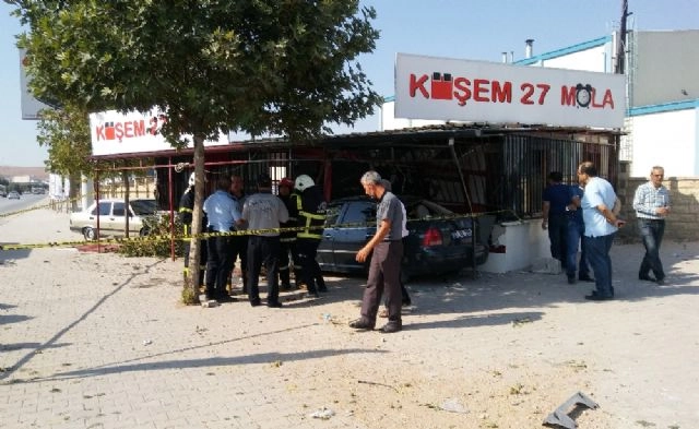 Gaziantep'te aniden önüne çıkan tıra çarpmamak için manevra yapan otomobil sürücüsü, aracıyla yolun karşısındaki kafeteryaya girdi. Kazada otomobilde bulunan bir kişi ölürken, araçta ve kafeteryada bulunan 3 kişi de ağır yaralandı. Edinilen bilgiye göre, Şehitkamil ilçesi 4. Organize Sanayi Bölgesi Vali Lütfullah Bilgin Bulvarı'nda seyir halinde bulunan Fevzi S. idaresindeki 27AE 299 plakalı otomobil, kavşakta aniden yola çıkan İbrahim A. idaresindeki 33 DBO 90 plakalı tıra çarpmamak için manevra yapınca, yolun karşısında bulunan Nizamettin Erol'a ait kafeteryaya girdi. Kazada sürücünün yanında bulunan Mehmet Doğan araçta sıkıştı. Olay yerinde yaşamını yitiren Doğan, sıkıştığı araçtan itfaiye ekipleri tarafından çıkarıldı. kazada sürücü ve otomobilde bulunan Nejdet Dağlı ile kafeterya müşterisi Cuma Zeynep yaralandı. Kazayı anlatan işletme sahibi Erol, kazanın bir anda olduğunu ve kaza esnasında bir müşterisinin de yaralandığını kaydetti.Kaza anı ise saniye saniye iş yerinin güvenlik kameralarına yansıdı. Kazanın boyutu güvenlik kameralarında ve kaza sonrası ortaya çıkan görüntülere net bir şekilde yansıdı.Kazanın ardından polis olay yerinde inceleme yaptı. Ekipler, iş yerinin güvenlik kameralarını da inceledi.(Mehmet Bulut / İHA)