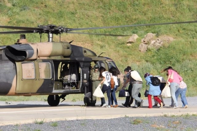 Siirt'te uzak bazı yerleşim birimlerine seçim görevlileri ve oy pusulaları helikopterle taşındı. Siirt'te, Cumhurbaşkanlığı anayasa değişikliği referandumunda halk oylamasının sorunsuz bir şekilde yapılabilmesi için Eruh, Pervari ve Şirvan ilçelerine bağlı bazı yerleşim birimlerine oy pusulaları ve seçim görevlileri, Siirt 3'üncü Komando Tugay Komutanlığından görevlendirilen helikopterle gönderildi. Siirt Valiliğinden yapılan açıklamada, "Sandık başkanları, helikopterle Eruh, Pervari ve Şirvan köylerine sorunsuz bir şekilde intikalleri sağlandı" denildi.(Mehmet Niyazi Deniz / İHA)