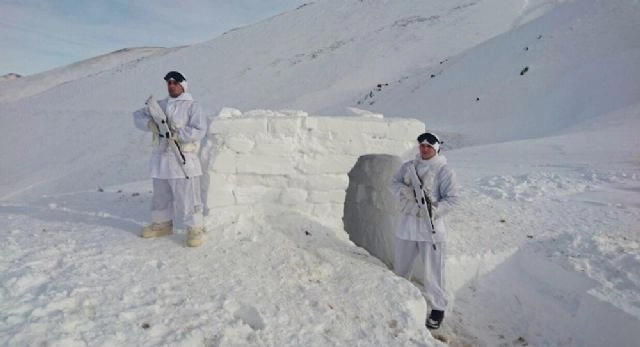 Erzurum'da 11-18 Şubat'ta düzenlenecek 13. Avrupa Gençlik Olimpik Kış Festivali (EYOF 2017) öncesinde güvenlik tedbirleri en üst düzeye çıkarılırken jandarmadan oluşan 'Dağ Kartalları'da Palandöken Dağının 3200 metre yükseklikteki zirve noktasına çıkarma yaptı. Palandöken Dağının zirvesinde iglo mevziler oluşturarak, kar kış demeden sıfırın altında 20 dereceye kadar düşen sıcaklıkta Mehmetçik, eli tetikte nöbete başladı. Beyaz kar örtüsünde beyaz kıyafetlerle kamufle olan 'Dağ Kartalları' 13. Avrupa Gençlik Olimpik Kış Festivali bitinceye kadar Palandöken'in zirvesinde kuş uçurtmayacak.(Ahmet Akbuğa/İHA)
