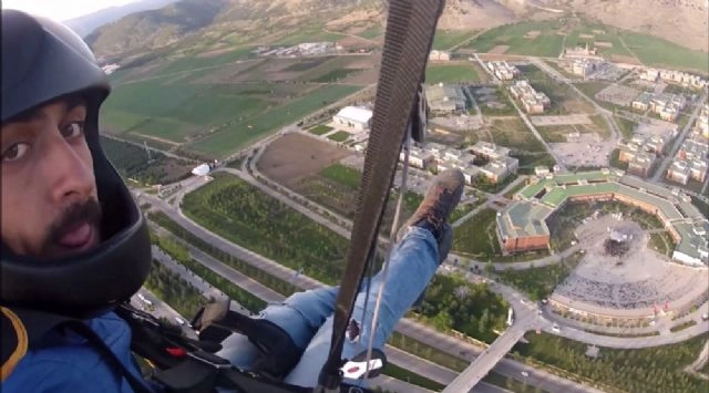 Isparta'da yamaç paraşütü sporuyla ilgilenen iki üniversite öğrencisi, okula bu kez paraşütle geldi. Öğrencilerin, kampüse inişi diğer öğrenciler tarafından şaşkınlıkla izlendi.