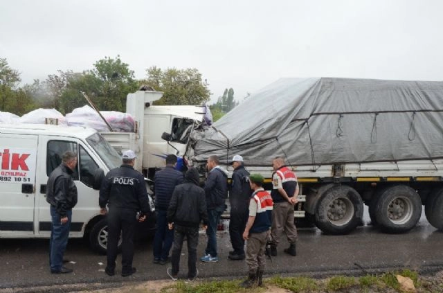 Eskişehir'de yaşanan trafik kazasında tırın patlayan tekerleğini değiştirmek isteyen sürücü, aynı yönden gelen kamyonun çarpması sonucu hayatını kaybetti. Kaza, Eskişehir-Bursa karayolunun 10'uncu kilometresinde yaşandı. Reşit Genç'in (53) kullandığı 16 LND 39 plakalı tırın lastiği birden patladı. Tırı yolun kenarında çeken Genç, olay yerine lastik tamircisi Murat Özyılmaz'ı çağırdı. Genç ve Özyılmaz tekerleği tamir etmeye başladıkları sırada, Selamet Çelik'in kullandığı 26 KD 335 plakalı kamyon, yol kenarındaki tır ve Murat Özyılmaz'a ait kamyoneti fark edemeyerek çarptı. Tır ile kamyonet arasında sıkışan Reşit Genç, olay yerinde hayatını kaybetti. Kazada yaşamını yitiren Genç'in cenazesi, otopsi yapılmak üzere Eskişehir Osmangazi Üniversitesi Tıp Fakültesi Hastanesi morguna kaldırıldı.(Mehmet Sıddık Yeşilırmak / İHA)