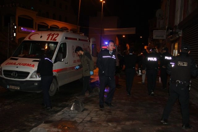 İstanbul Beyoğlu'nda bir pidecide oturan müşterilere kimliği belirlenemeyen kişi ya da kişiler tarafından silahla ateş açılması sonucu 3 kişi yaralandı. Olay, 05.15 sıralarında Beyoğlu Irmak Caddesi üzerinde bulunan bir pidecinin önünde meydana geldi. Edinilen bilgiye göre, kimliği belirsiz kişi veya kişilerce pideci önünde oturan müşterilere silahla ateş açıldı. Açılan ateş sonucunda biri kadın 3 kişi yaralandı. Durumu haber alan çok sayıda polis ve sağlık ekibi olay yerine sevk edildi. Olay yerine gelen sağlık ekipleri yaralılara ilk müdahaleyi olay yerinde yaptı. Yaralılar daha sonra ambulanslarla çevrede bulunan hastanelere kaldırıldı.Olay yerine gelen polis ekipleri çevrede geniş güvenlik önlemi aldı. Olay yerinde incelemelerini tamamlayan polis ekipleri kaçan şüpheli veya şüphelileri yakalamak için çalışma başlattı.(İsmail Bulut/İHA)