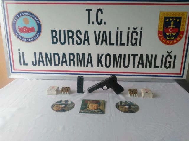 Bursa'da sosyal medya hesabından PKK propagandası yapan şahsın evinden FETÖ/PDY'ye ait yasaklı 2 dergi ele geçirildi. Bursa İl Jandarma Komutanlığı ekipleri, terör örgütü PKK'nın faaliyetlerini deşifre etmek için yaptığı çalışmalarda sosyal medyadan bir kişinin örgüt propagandası yaptığını tespit etti. İstanbul-İzmir otoban şantiyesinde çalışan A.B., Karacabey ilçesi Eskisarıbey Mahallesi'ndeki ikametinde gözaltına alındı. Evde yapılan aramada 1 adet ruhsatsız tabanca, 48 adet fişek, PKK'ya ait bez parçaları, düğünde çekilmiş fotoğraf ve FETÖ/PDY'ye ait yasaklı 2 dergi ele geçirildi. Şüpheli, işlemlerinin ardından sevk edildiği adli mercilerce tutuklandı.