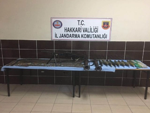 Hakkari'de güvenlik güçleri tarafından yapılan çalışmalarda terör örgütü PKK'ya ait sığınakta çok sayıda silah ve mühimmat ele geçirildi.Valilik tarafından yapılan açıklamada, "İl Jandarma Komutanlığı ve İl Emniyet Müdürlüğü görevlilerimizce PKK/KCK bölücü terör örgütü faaliyetlerinin deşifre edilmesi ve engellenmesine yönelik olarak yürütülen çalışmalar kapsamında; ilimiz merkez Oğul köyü kırsal alanında devam eden operasyonda 28.06.2017 günü yapılan arama ve tarama faaliyeti esnasında bir sığınak tespit edilmiştir. Sığınakta yapılan aramada 2 adet RPG-7 roketatar, 1 adet bixi makinalı tüfek, 8 adet anti tank roketatar mühimmatı, 8 adet sevk fişeği, 350 metre kablo, 1 adet sırt çantası, 762 adet bixi mühimmatı, 1 adet not defteri, çok ve muhtelif sayıda yaşam ve giyim malzemesi ele geçirilmiştir. Konu ile ilgili adli tahkikat devam etmektedir" denildi.,
