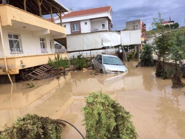 Ankara'da aşırı yağışın ardından gelen sel hayatı felç etti. Toplamda 1 iş yeri ile 13 evi sel suları basarken, pek çok tarım ürünü de selden olumsuz etkilendi. Ankara'nın Polatlı ilçesinde 3 gün süren aşırı yağışın etkiyle sel felaketi yaşandı. İlçedeki çok sayıda işyeri ve ev sel sularıyla dolarken, ciddi anlamda maddi hasar meydana geldi. Polatlı Kaymakamlığından yaşanan sel felaketine ilişkin yapılan açıklamaya göre; 5 Haziran Pazartesi günü öğle saatlerinde başlayan ve akşam saatlerine doğru şiddetini giderek artıran yağmur neticesinde, ilçe merkezine toplamda 50,6 kilogram yağmur düştü. Sel sularının etkisinde kalan Mehmet Akif Mahallesinde Başbakanlık Afet ve Acil Durum Yönetimi Başkanlığı (AFAD) ekiplerince 6 Haziran 2017 tarihinde yapılan tespitlere göre; toplamda 1 iş yeri ile 13 evi sel bastığı, 3 otomobil ile bazı evlerin bahçelerinin zarar gördüğü tespit edildi.Uzunbeyli, Sinanlı, Adatoprakpınar, Hacıosmanoğlu, Türktaciri, Kabak, Çanakçı, Tatlıkuyu, Kargalı, Kuşçu, Beyceğiz ve Karapınar Mahallelerinde dolu ve sel etkili oldu. Bu mahallelerde ekili bulunan tarımsal ürünlerin bulunduğu araziler sel suları altında kalırken tarımsal ürünler de doludan etkilendi. Açıklamada, İlçe Gıda, Tarım ve Hayvancılık Müdürlüğüne bağlı 2 ekibin gerekli ön tespitleri yapmak üzere 6 Haziran 2017 tarihinde arazide çalışmalara başladığı bildirildi.TARIM ÜRÜNLERİ ZARAR GÖRDÜBuğday, arpa, şekerpancarı, haşhaş, soğan, kavun, karpuz, dane mısır, yağlık ayçiçeği ve kabak gibi ürünlerin de selden olumsuz etkilendiğinin ifade edildiği açıklamada, "Yapılan ön tespitlere göre; 500 çiftçimizin toplamda yaklaşık 60 bin dekar arazide ekili olan yukarıdaki tarımsal ürünler yüzde 30 ile yüzde 50 arasında zarar görmüş olup, önümüzdeki günlerde tespitlerin nihai sonucu tam olarak belli olacaktır. Çünkü bazı arazilere yağıştan dolayı girilememiştir. Uzunbeyli mahallemizde de 15 adet evimizin bahçe duvarı yıkılmış ve yaklaşık 60 adet arı kovanı da sel zararından etkilenmiştir" denildi.Merkez Mehmet Akif Mahallesi'nde yaşanan sel felaketi sonucunda bölgeye giden Polatlı Kaymakamı Mahmut Nedim Tunçer, yetkilileriyle birlikte hasar tespit çalışmalarını yerinde inceleyerek vatandaşlara 'geçmiş olsun' dedi. Selden zarar gören dükkan ve evleri tek tek inceleyen Tunçer, vatandaşların taleplerini dinleyerek, hasar tespit çalışmalarının en kısa sürede tamamlanması ve vatandaşların zararlarının bir an önce karşılanması yönünde talimatını verdi.Selden zarar gören çiftçilerle sohbet eden Tunçer, devlet olarak her zaman yanlarında olduklarını zararın bir an önce karşılanması konusunda yetkililere talimat verdi.Tunçer; Uzunbeyli, Kabak, Sinanlı ve Adatoprakpınar Kırsal Mahallelerini ziyaretinde yaptığı açıklamada, "Olayda can kaybının olmaması bizleri sevindirmiştir. Tüm vatandaşlarımızın mağduriyeti bizleri derinden üzmüştür. Vatandaşlarımızın mağduriyetinin giderilmesi için gerekli çalışmalar başlatılmıştır. Halkımıza geçmiş olsun. Bir daha böyle bir felaketin yaşanmamasını temenni ederim" diye konuştu. (Hamza Kabasakal / İHA)
