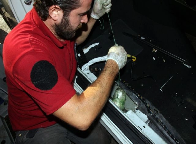 Kocaeli Emniyet Müdürlüğü Narkotik Suçlar ile Mücadele Şubesi ekiplerince durdurulan İran plakalı lüks otomobilin zulasından uzanan ipi çeken polis ekipleri, 66 kilogram eroin ele geçirdi. Son yıllarda yaptığı başarılı operasyonlarla adını sıkça duyuran Kocaeli Emniyet Müdürlüğü Narkotik Suçlar ile Mücadele Şubesi ekipleri, uyuşturucu tacirlerine adeta savaş açtı. İran'dan Türkiye'ye giriş yapan ve İstanbul'a uyuşturucu sevkiyatı yapacağı öğrenilen bir otomobili yakalamak için Narkotim dedektifleri operasyon başlattı. Sevkiyatı adım adım izleyen Kocaeli Narkotim ekipleri, içinde 3 kişilik İran asıllı bir ailenin olduğu otomobili Kartepe ilçesi D-100 karayolu üzerinde durdurdu. İlk incelemede narkotik köpeği Stark'ın aracın altına tepki vermesi üzerine lüks otomobil Kocaeli Emniyet Müdürlüğü otoparkına çekildi.NARKOTİK KÖPEĞİ KOKU ALMASIN DİYE GRES YAĞI SÜRMÜŞLERBurada Narkotim ekiplerince tekerleri ve araç iç zemini sökülen otomobilin tabanının adeta uyuşturucu zulasına çevrildiği tespit edildi. Açılan gizli bölmelerden sarkan ipi çeken Kocaeli Narkotim ekipleri, birbirine bağlanmış 77 paket halinde 66 kilogram eroin maddesini eli ile koymuş gibi buldu. Çıkarılan paketlerin üzerindeki gres yağı ise dikkat çekti. Uyuşturucu tacirlerinin, narkotik köpeğinin koku almaması için gres yağı sürdüğü öğrenildi. Ancak tacirlerin bu yöntemini yine narkotik köpeği bozdu. Paketler üzerinde ayrıca çift kartal işaretleri ve Fars alfabesiyle yazılmış yazılar olduğu tespit edildi. Operasyon anı ise İHA kameralarına saniye saniye yansıdı.Yüklü miktarda eroinin ele geçirildiği lüks otomobildeki İran uyruklu 3 kişilik aile gözaltına alınırken olayla ilgili inceleme başlatıldı.(Gürcan Yılmaz - Refik Fidan/İHA)