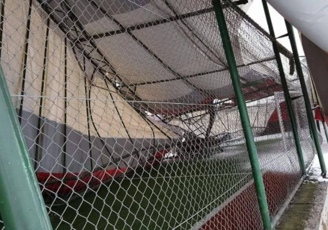 Tokat'ın Reşadiye ilçesinde etkili olan yoğun kar yağışı nedeniyle bir halı sahanın çatısı çöktü.