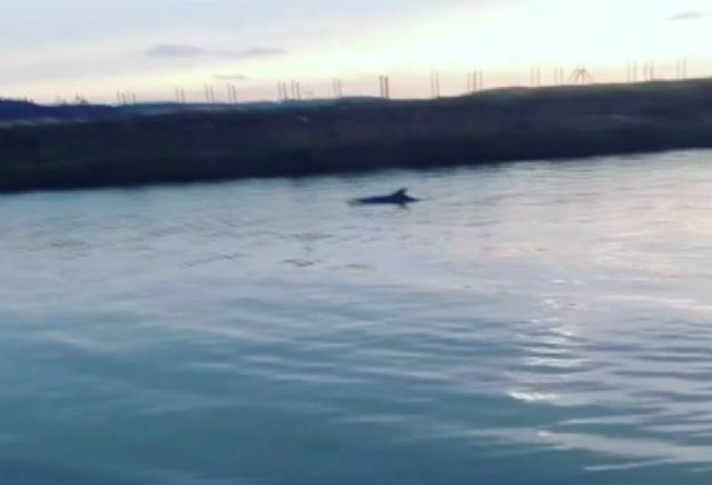 Beykoz'da Riva deresine giren yunuslar kameralara yansıdı.