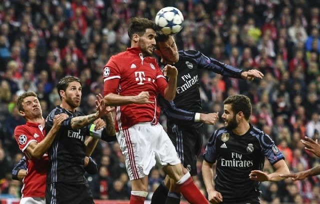 UEFA Şampiyonlar Ligi çeyrek final ilk maçında Bayern Münih, sahasında Real Madrid'e 2-1 mağlup oldu. Allianz Arena'da oynanan mücadelede ilk gol Alman ekibinden geldi. 25. dakikada Vidal takımını 1-0 öne geçirirken, 45. dakikada aynı oyuncu penaltı atışından yararlanamayınca ilk yarı Bayern Münih'in 1-0 üstünlüğü ile tamamlandı. İkinci yarıda Real oyuna ağırlığını koyarken, 47 ve 77. dakikalarda sahneye çıkan Ronaldo attığı iki golle geceye damga vurdu. Karşılaşma Real Madrid'in 2-1 üstünlüğü ile sona erdi. Portekizli oyuncu, attığı iki golle Avrupa kupalarında 100 gole ulaşan tarihteki ilk isim olarak da ulaşılması zor bir rekora imza attı.İki takım arasındaki rövanş mücadelesi 18 Nisan'da Madrid'de oynanacak.