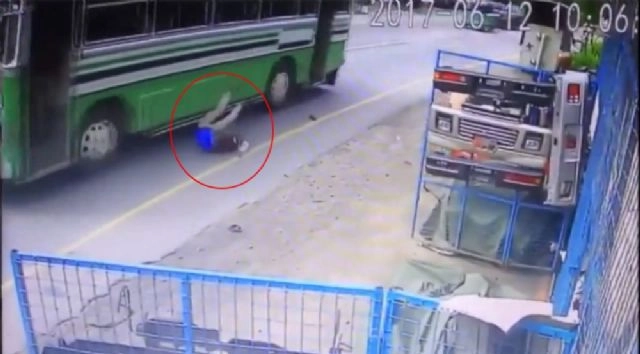 Sri Lanka'da sabırsız yolcu, aşağı inmek için otobüsün durmasını beklemeyince ölümden döndü.Araç hareket halindeyken aşağı adımlayan şahıs, bir anda dengesini kaybetti. Otobüsün altında kalmaktansa kıl payı kurtuldu. Şanslı genç olayı yara almadan atlatırken, olaysa saniye saniye güvenlik kamerasına yansıdı.