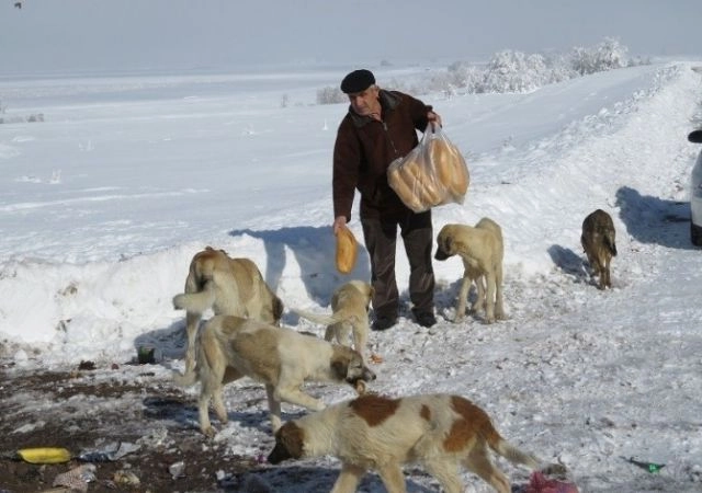 Konya'nın Yalıhüyük ilçesinde yaşayan bir vatandaş her gün 5 kilometre yol giderek sahipsiz köpeklere yiyecek götürerek besliyor.Yalıhüyük ilçesinde yaşayan Naci Yılmaz (65), ilçeye 5 kilometre uzaklıktaki çiftlik yolunda çok sayıda sahipsiz köpeğe her gün yiyecek götürerek, hayvanların yaşama tutunmasına yardımcı oluyor. Düzenli olarak dışarıda kalmış hayvanları beslediğini söyleyen Yılmaz, "Fırından ekmek, evden buğday alıyorum. Arada gelerek bunları besliyorum. Kar nedeniyle yiyecek sıkıntısı çeken kuşlar için de açık alanlara buğday koyuyorum. İlçemiz halkı da sağolsun bu konuda duyarlı ve bana destek veriyor" dedi.