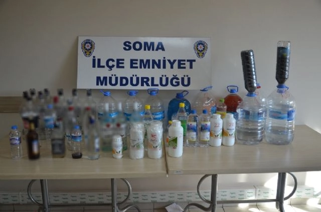 Manisa'nın Soma ilçesinde 2 kişinin hayatını kaybettiği 2 kişinin de yoğun bakımda tedavi altında olduğu sahte içki olayında Soma İlçe Emniyet Müdürlüğünün düzenlediği operasyonda ele geçirilen malzemeler arasında oto cam suyunun bulunması dikkat çekti.