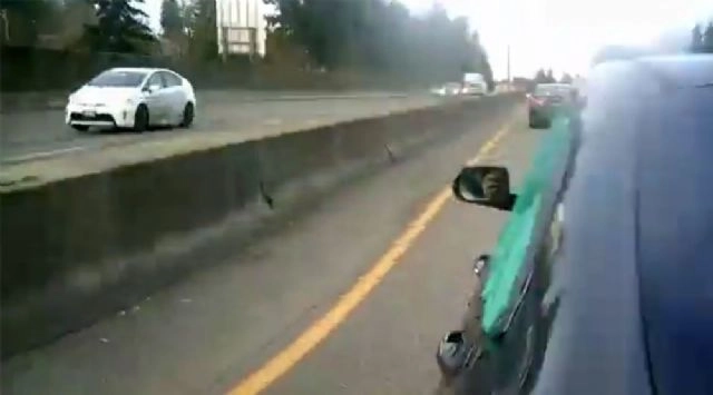 Amerika Birleşik Devletlerinde otoyolda yaşanan ilginç kazanın sürücü kaskı görüntüleri ortaya çıktı.