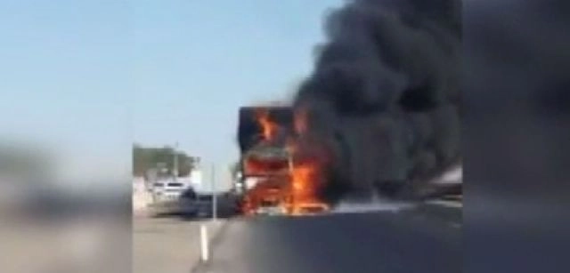 Diyarbakır-Siverek karayolunda henüz belirlenemeyen bir sebeple alev alan saman yüklü kamyon tamamen yandı. O anlar bir vatandaş tarafından kaydedildi.