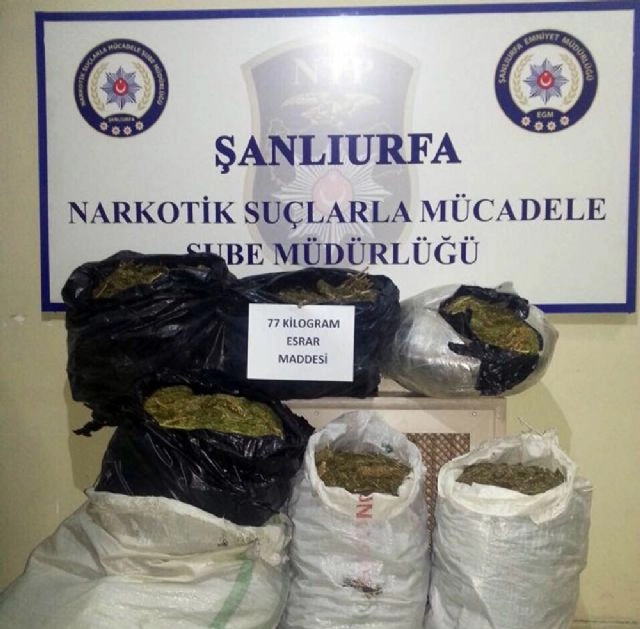 Şanlıurfa'da 77 kilogram esrar maddesi ele geçirildi.