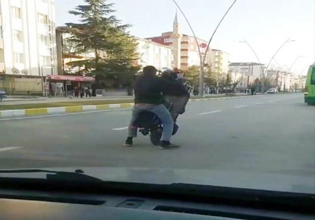 Konya'nın Ereğli ilçesinde, trafik akışının yoğun olduğu caddede şarjlı bisikletiyle tek teker üzerinde giden bir kişinin tehlikeli yolculuğu görenleri hayrete düşürdü. Edinilen bilgiye göre, stadyum yönünden belediye istikametine giden bir kişinin kullandığı şarjlı bisikletin önünü havaya kaldırarak tek teker üzerinde yaptığı yolculuk görenleri şaşırttı. Trafik akışının olduğu caddede araçların yanından tek teker üzerinde giden şahıs, bir aracın içerisinde bulunan bir kişi tarafından cep telefonuyla görüntülendi. Görüntüyü çeken şahsın da, 'Yurdum insanı' dediği sürücüye başarılar dilemesi de dikkat çekti. (Özcan Saraç /İHA)