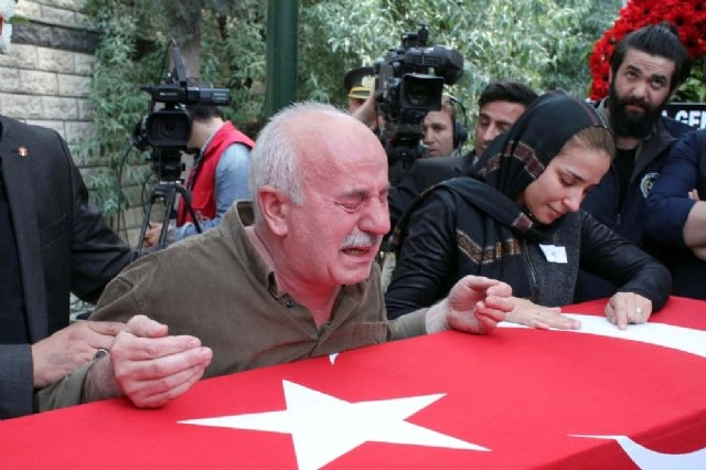 Şırnak Uludere'deki helikopter kazasında şehit olan Yüzbaşı Nuri Şener'in cenazesi İstanbul'a son yolculuğuna uğurlandı. Oğlunun tabutuna sarılan şehit babası, 'Yanık kokularına kurban olayım senin' diyerek gözyaşı döktü.