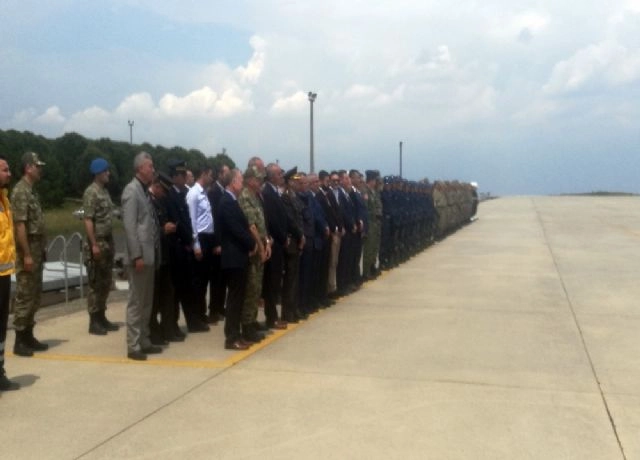 Şırnak'ın Şenoba bölgesinde düşen helikopterde şehit olan Binbaşı Koray Onay'ın Türk bayrağına sarılı naaşı memleketi Çanakkale'nin Gelibolu ilçesine gönderilmek üzere Çorlu Havaalanına getirildi.
