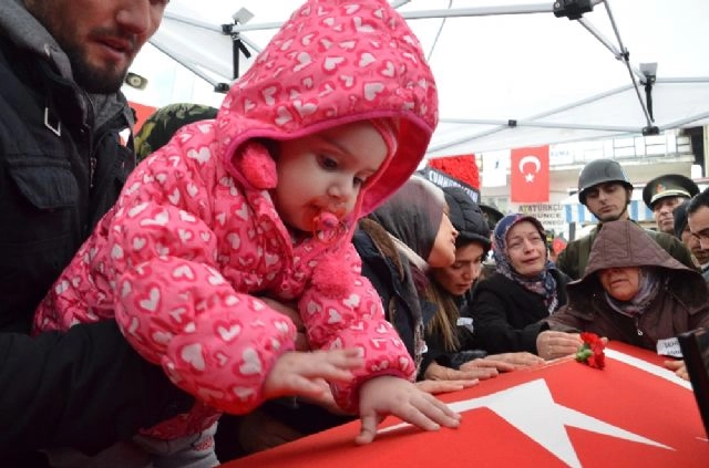 Suriye'nin El-Bab bölgesinde DEAŞ tarafından yapılan saldırıda şehit düşen 27 yaşındaki Uzman Çavuş Bahattin Bakır, memleketi Zonguldak'ın Devrek ilçesinde son yolculuğuna uğurlandı. El-Bab bölgesinde DEAŞ tarafından düzenlenen saldırıda şehit düşen 27 yaşındaki Uzman Çavuş Bahattin Bakır'ın naaşı, öğlen saatlerinde Zonguldak Havalimanına inen uçaktan alınarak Devrek Devlet Hastanesi morguna konuldu.Şehidin naaşı için Devrek Cumhuriyet Alanı'nda cenaze töreni düzenlendi.ŞEHİDİN AİLESİ FERYAT EDİP GÖZYAŞI DÖKTÜŞehidin tabutu cenaze aracından omuzlara alınarak Merkez Yeni Camii'nin avlusuna getirildi. Şehidin babası Hüseyin Bakır, tören alanında taziyeleri kabul etti. Güçlükle ayakta durabilen baba Hüseyin Bakır, oğlunun tabutu başına geçerek gözyaşı döktü. Şehidin kız kardeşi Habibe Bakır, zaman zaman annesi Hatime Bakır'ın yanağını öperek teselli vermeye çalıştı. Şehidin ablası Nafize Küçükkaya da annesinin elini tutarak destek olmaya çalıştı. Şehidin ailesi oğullarının tabutu başına gelerek feryat etti.Şehidin amcasının oğlu Murat Bakır da tabutun başına gelerek şehidin fotoğrafını dakikalarca öptü. Güçlükle ayakta durabilen Murat Bakır, tabutun başından bir an olsun ayrılmadı.BUĞLEMNUR'DAN DAYIYA SON BAKIŞBir ara abla Nafize Küçükkaya, 1.5 yaşındaki kızı Buğlemnur'u kucağına alarak sevdi. Ardından şehidin yakınları minik bebeği şehit dayısının tabutu başına getirdi. Buğlemnur ellerindeki karanfilleri dayısının tabutuna bıraktı.Çok sevdiği dayısının tabutu başına getirilen Buğlemnur, her şeyden habersiz annesi, dedesi, teyzesi ve anneannesi ile birlikte dakikalarca tabutu sevdi. CENAZE NAMAZINI MÜFTÜ KILDIRDIZonguldak İl Müftüsü Mürsel Öztürk'ün kıldırdığı cenaze törenine AK Parti Zonguldak Milletvekilleri Hüseyin Özbakır, Faruk Çaturoğlu, Özcan Ulupınar, CHP Milletvekilleri Şerafettin Turpçu ve Av. Ünal Demirtaş'ın yanı sıra Zonguldak Valisi Ali Kaban, İl Jandarma Komutanı Albay Haluk Selvi, İl Emniyet Müdürü Ahmet Metin Turanlı, belediye başkanları ve 3 bine yakın vatandaş katıldı.İkindi namazını müteakip cenaze namazı kılınan şehidin naaşı defnedilmek üzere Pınarönü köyüne götürüldü.KREDİ ÇEKİP ALDIĞI OTOMOBİLİNE İKİ GÜN BİNEBİLDİ15 gün önce ailesinin yanına gelen Uzman Çavuş Bahattin Bakır'ın, görev yaptığı Tunceli'de bir süre önce kredi çekerek otomobil satın aldığı öğrenildi. Şehidin, köyüne yaptığı ziyaret boyunca yeni aldığı otomobiline iki gün binebildiği öğrenildi.Evinin garajına otomobilini koyarak Suriye'deki görev gittiği öğrenilen Bakır'ın, Suriye görevi dönüşünde otomobilini kullanmayı planladığı ortaya çıktı.(Fikri Erdem - Onur Altındağ - Sertaç Özdemir / İHA)