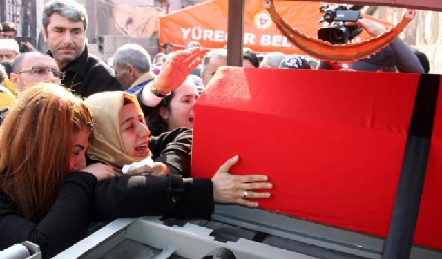 Fırat Kalkanı Harekatında şehit olan Uzman Çavuş Gökhan Kılıç'ın cenazesi Adana'daki baba ocağına getirildiği sırada 3 ay önce evlendiği eşinin, "Gökhan kalk, Gökhan'ı görmek istiyorum" diyerek ağıt yakması herkesi ağlattı. Şehit annesi de cenaze aracını görünce bayıldı. Fırat Kalkanı Harekatı'nın 169'uncu gününde Suriye'nin El Bab kentinde DEAŞ'lı teröristlerle girilen çatışmalarda şehit düşen Kılıç,'ın cenazesi 4 silah arkadaşıyla Gaziantep'te yapılan askeri törenin ardından memleketi Adana'ya getirildi."ANNE CENAZE ARACINI GÖRÜNCE BAYILDI"Adana Havalimanından askeri cenaze aracıyla alınan şehidin naaşı konvoy eşliğinde Yüreğir ilçesi, Sarıçam Mahallesi 2424 Sokaktaki baba ocağına götürüldü. Cenaze aracı sokağa girer girmez onu gören anne Fadime Kılıç, baygınlık geçirdi. Anneye yakınları yardım etmeye çalıştı."GÖKHAN'IMI GÖRMEK İSTİYORUM"Şehidin 3 ay önce evlendiği eşi Hasret Kılıç ise yakınların yardımıyla ayakta durabildi. Eşinin Türk Bayrağına sarılı tabutunu görünce gözyaşlarına boğulan Kılıç, tabuta sarılarak, "Gökhan'ımı görmek istiyorum. Gökhan kalk" diye ağıt yakıp uzun süre tabuta sarıldı. Şehidin ablası Ayşe Kılıç'ta tabuta sarılarak, "Aşkım kalk, biz geldik" diye ağladı. Baba Mehmet Kılıç'ta oğlunun Türk Bayrağına sarılı tabutuna sarılarak gözyaşlarına boğuldu. Bir süre sonra şehidin naaşı Asri Mezarlığı morguna götürüldü. Şehit Uzman Çavuş Gökhan Kılıç'ın cenazesi Sabancı Merkez Camii'nde öğle namazından sonra kılınacak cenaze namazının ardında şehitlikte toprağa verilecek.(Fatih Keçe/İHA)