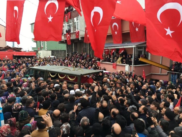 Afrin'de süren "Zeytin Dalı Harekatı"nda şehit düşen Piyade Üstçavuş Fatih Mehmethan'ın cenazesi helallik alınmak üzere son kez Ümraniye'deki evine getirildi. Eşinin üniformasını giyen şehit eşi Gamze Mehmethan, tabut başında gözyaşı döktü. Afrin'de süren Zeytin Dalı Harekatında şehit düşen Piyade Üstçavuş Fatih Mehmethan'ın naaşı, helallik alınmak üzere son kez Ümraniye'deki baba ocağına getirildi. Burada şehidi, babası Mehmet, annesi Nihal ve eşi Gamze Mehmethan, Ümraniye Kaymakamı Suat Dervişoğlu, Ümraniye Belediye Başkanı Hasan Can ve çok sayıda vatandaş karşıladı. Eşinin üniformasını giydiği gözlenen Gamze Mehmethan, tabut başında uzun süre gözyaşı döktü. "Şehitler ölmez vatan bölünmez" sloganlarıyla son kez evine getirilen şehit Fatih Mehmethan için dua edildi.Şehidin naaşı helallik alınmasının ardından cenaze namazı için Pendik'te bulunan 15 Temmuz Şehitler Camii'ne doğru yola çıktı.(Mustafa Biçer / İHA)