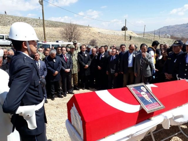 Tunceli'nin Pülümür ilçesinde helikopterin düşmesi sonucu şehit düşen polis memurlarından Candaş Kaplan, memleketi Malatya'nın Akçadağ ilçesinde gözyaşları arasında son yolculuğuna uğurlandı. Sabah Şehir Mezarlığı morgundan alınan şehit Candaş Kaplan'ın (26) Türk bayrağına sarılı naaşı, son kez Hacı Abdi Mahallesi'ndeki babaevine götürüldü. Burada helallik alınmasının ardından cenaze, konvoy eşliğinde Akçadağ ilçesi Ortaköy Mahallesi'ne getirildi. Mahalle mezarlığında düzenlenen cenaze törenine Malatya Valisi Mustafa Toprak, 2. Ordu Kurmay Başkanı ve Garnizon Komutanı Tümgeneral Asım Kocaoğlu, Akçadağ Kaymakamı Serdar Demirhan, CHP Genel Başkan Yardımcısı ve Malatya Milletvekili Veli Ağbaba, CHP İl Başkanı Enver Kiraz, Malatya Emniyet Müdürü Ömer Urhal ile şehidin yakınları ve çok sayıda vatandaş katıldı. Geniş güvenlik önlemlerinin alındığı cenaze töreninde anne Gülbahar Kaplan ile şehidin Kuzey Kıbrıs Türk Cumhuriyeti'nde asker olan kardeşi Çağdaş Kaplan uzun süre tabuta sarılarak gözyaşı döktü. CHP Akçadağ Belediye Meclis üyesi olan şehidin babası Mustafa Kaplan ise güçlükle ayakta durabildi. Kılınan cenaze namazının ardından Alevi Dedesi tarafından dua yapıldı ve şehidin cenazesi gözyaşları arasında defnedildi. Defin işlemlerinin ardından şehidin tabutuna sarılı Türk bayrağı Vali Mustafa Toprak tarafından baba Mustafa Kaplan'a teslim edildi. Öte yandan, CHP Genel Başkanı Kemal Kılıçdaroğlu da şehidin babası Mustafa Kaplan'ı telefonla arayarak başsağlığı dileklerini iletti.(Hasan Eryılmaz/İHA)