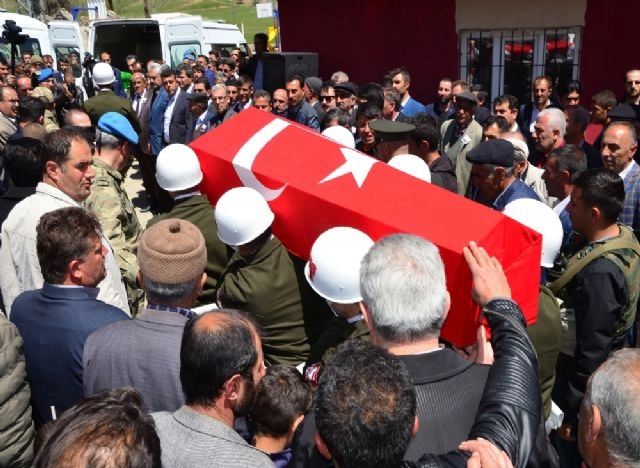 Dün Kars'ın Kağazman ilçesi Dibekkaya köyü kırsalında PKK'lı teröristlerin araziye döşediği mayına basarak şehit olan Jandarma Uzman Çavuş Tekin Tekin, memleketi Bitlis'in Tatvan ilçesindeki düzenlenen törenle son yolculuğa uğurlandı.Şehit Jandarma Uzman Çavuş Tekin Tekin (25) için doğduğu köy olan Tatvan ilçesine bağlı Kırkbulak köyünde cenaze töreni düzenledi. Cenazesi ambulansla Bitlis'in Tatvan ilçesinden Kırkbulak köyüne getirilen Şehit Jandarma Uzman Çavuş Tekin Tekin'i Türk bayraklarıyla donatılan köyde ailesi, yakınları ve sevenleri karşıladı. Gözyaşlarının sel olup aktığı cenaze töreninde tabuta sarılarak ağıtlar yakan şehidin yakınları sinir krizleri geçirdi. Köy meydanında düzenlenen törende konuşan Bitlis Valisi Ahmet Çınar, şehide Allah'tan rahmet kederli ailesine ise sabır ve başsağlığı diledi. Yapılan konuşmanın ardından Bitlis İl Müftüsü Faysal Geylani tarafından şehidin cenaze namazı kıldırılarak, helallik istendi. Cenaze namazının ardından şehitleriyle vedalaşan şehit yakınları gözyaşlarına boğularak, sinir krizleri geçirdi.Köy meydanında kılınan cenaze namazının ardından Şehit Jandarma Uzman Çavuş Tekin Tekin, okunan dualar ve tekbirlerle köy mezarlığına defnedildi.(Hakan Okay /İHA)